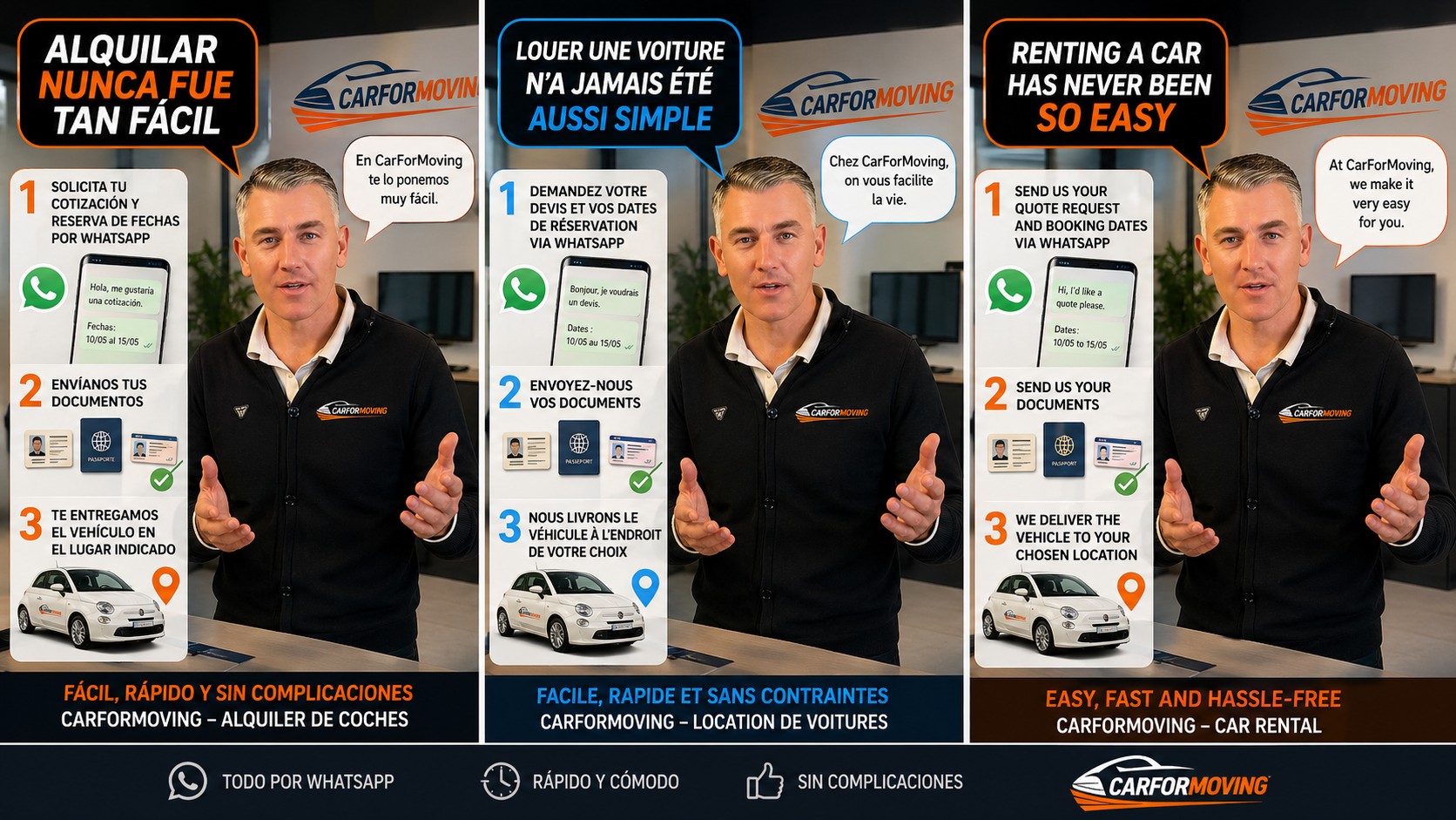 Disfruta de nuestra flota fácil de conducir, pensada para viajes de placer. Recogida en estación, aeropuerto y alrededores con atención cercana y amigable.